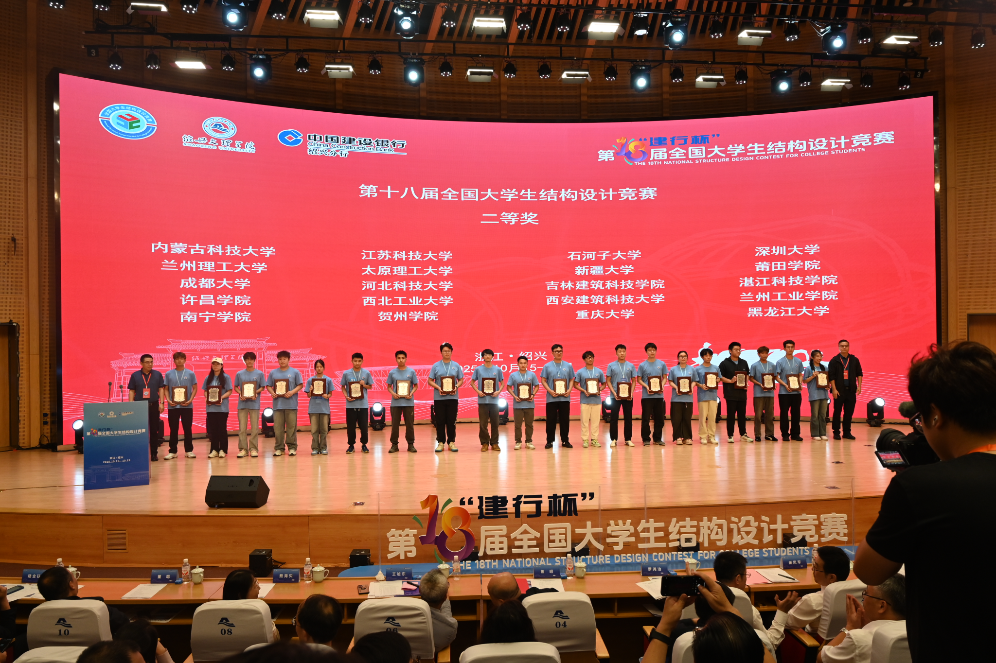 10月15日至19日,第十八届“建行杯”全国大学生结构设计竞赛在绍兴文理学院举办,经过激烈的角逐,永利官网由土木工程学院23级学生曹朋朋、黎坤、孔璀英同学组成的“金鹰战队”在汤伟老师的指导下荣获二等奖,同时永利官网获本届竞赛优秀组织奖。