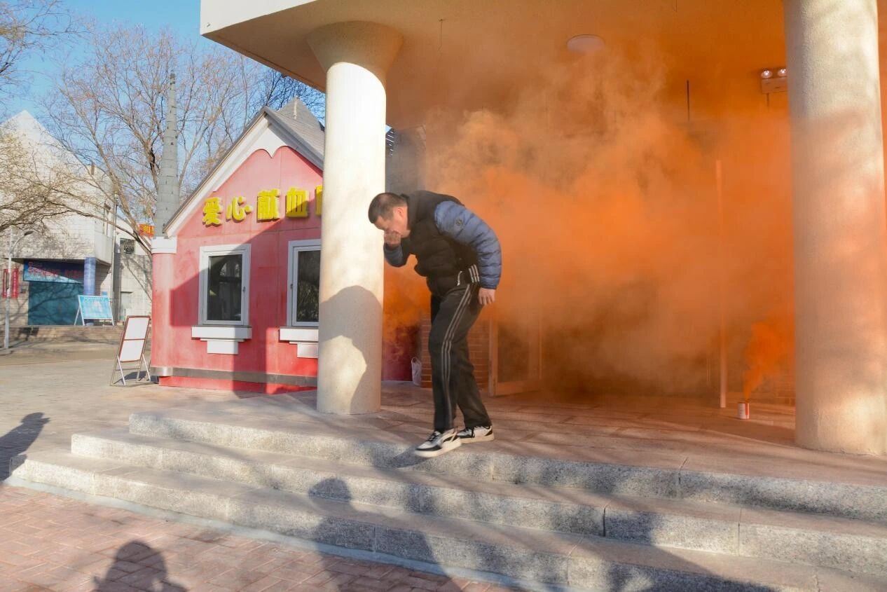 上午9时整,随着模拟火情警报响起,演练正式启动。某宿舍楼突发“火情”,现场人员迅速拨打校内火警电话报告火势及被困情况。各学院安全员立即引导师生用湿毛巾捂住口鼻、弯腰低姿,沿预定路线快速撤离至活动广场。