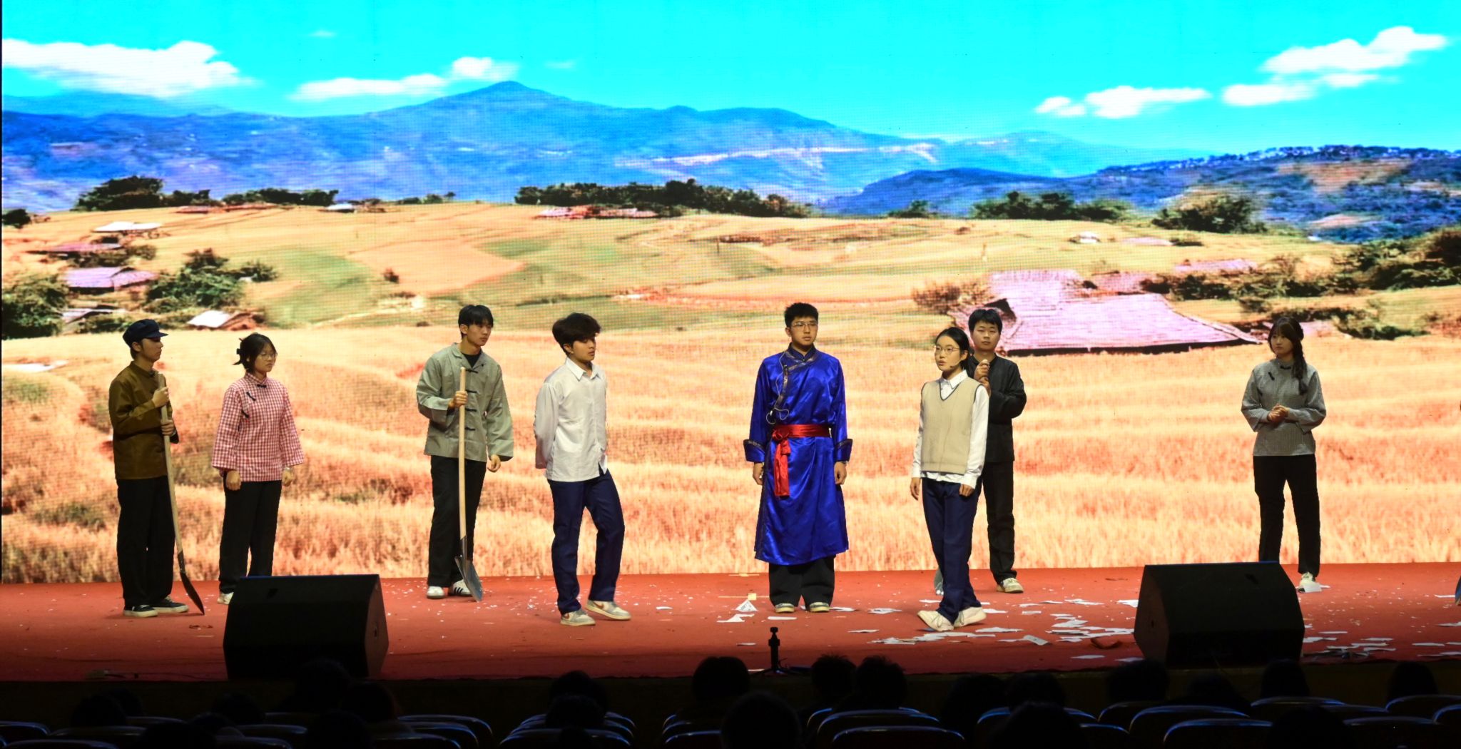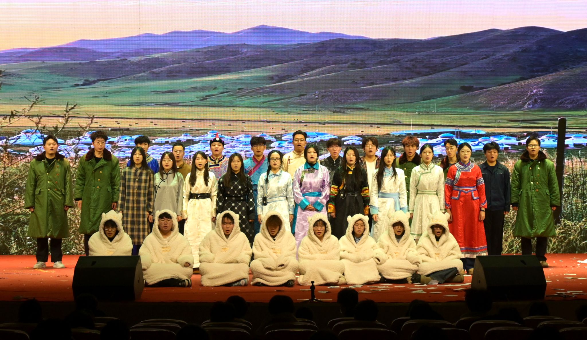 为深入学习贯彻落实党的二十届四中全会精神和习近平总书记关于加强和改进民族工作的重要思想,扎实推进铸牢中华民族共同体意识教育,助力永利官网铸牢中华民族共同体意识教育再上新台阶,12月11日,学校举办第三届铸牢中华民族共同体意识校园舞台剧大赛。校党委书记呼和、纪委书记李国辉出席活动,各职能部门、学院有关负责人及500余名师生代表共同观看了比赛。