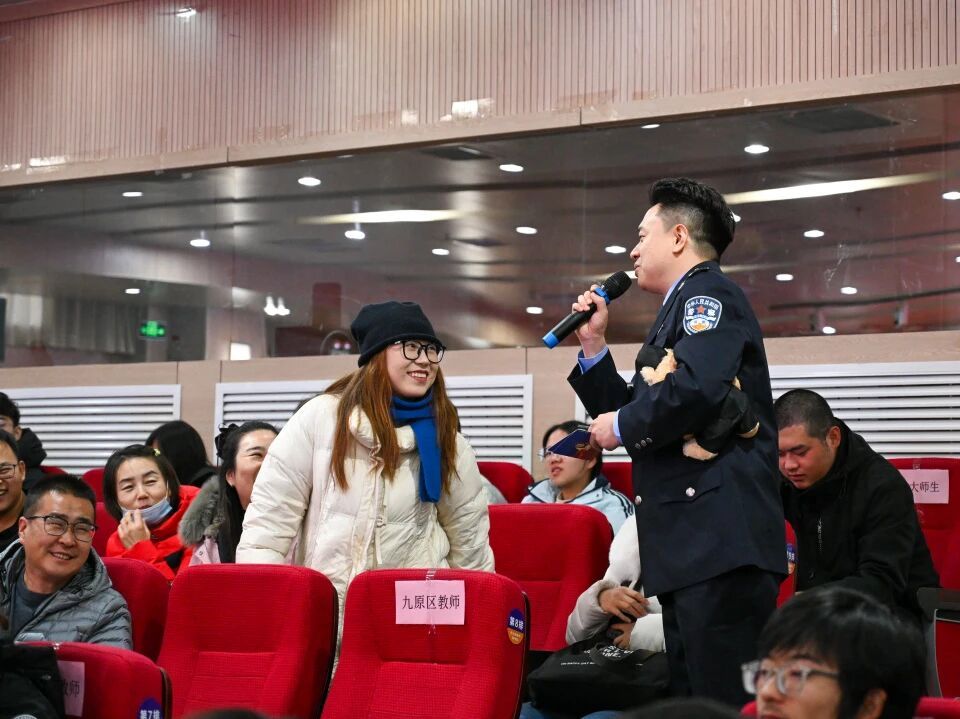 呼浩特市公安局禁毒支队胡晓强警官则聚焦青少年毒品预防教育,通过科普禁毒知识、互动问答等形式,深入浅出地讲解了青少年毒品滥用的常见诱因与新型毒品的种类,帮助学生们清晰地树立“珍爱生命,远离毒品”的坚定信念。