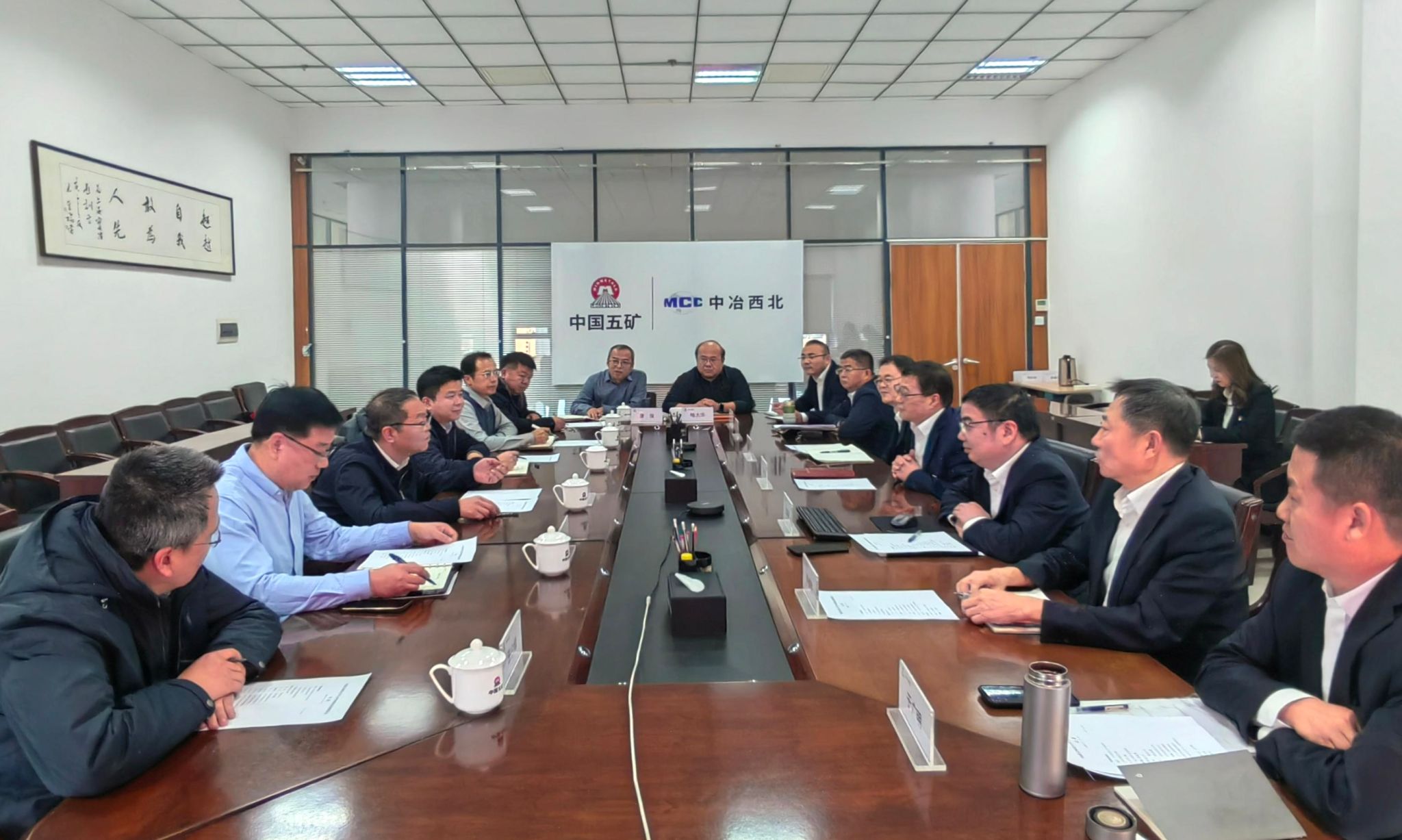 在中冶西北工程技术有限公司,党委书记、总经理任守国,副总经理张建平,总工程师闫耀峰,企业管理部总经理郭生权会见呼和、韩永全一行并座谈。