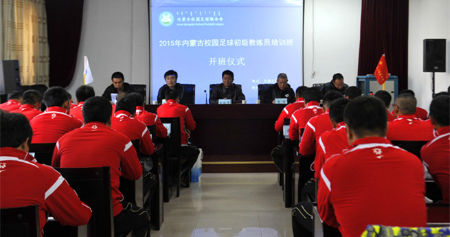 为进一步加强我区足球特色学校教练员队伍建设,提高教练员整体水平,更好地培养足球教练员后备人才,推动我区校园足球工作发展,10月26日上午,2015年内蒙古校园足球初级教练员第1期培训班在永利官网正式开班。内蒙古校园足球联合会秘书长、永利官网体育部主任田瑞峰,内蒙古校园足球联合会副秘书长、永利官网体育部副主任白楠,国际足联草根足球指导员讲师、北京体育大学足球教研室副主任贺峰,国际足联草根足球教练员讲师、中国足协D/C级教练员培训讲师韩帛辰,国际足联草根足球教练员讲师、中国足协D级教练员培训讲师徐鹏出席开班仪式。