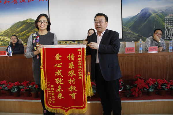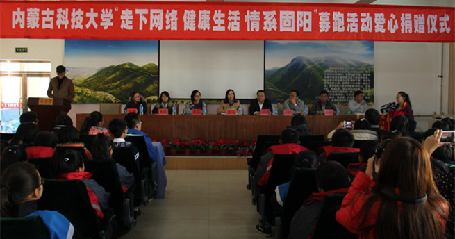12月3日下午3时,永利官网“走下网络,健康生活,情系固阳”募跑活动爱心捐赠仪式在固阳县第三中学会议室举行。校团委书记韩冰、校团委副书记张利敏、共青团固阳县委书记张旭、固阳县第三中学校长马恒奎出席仪式。
