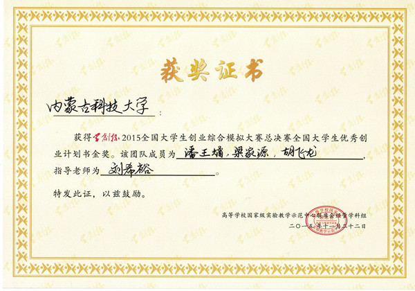 在本次大赛中,永利官网科技创业协会所在的代表队伍在总决赛中分获“创业计划大赛金奖”和学创杯综合模拟大赛“一等奖”的优异成绩。