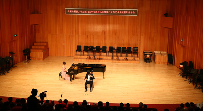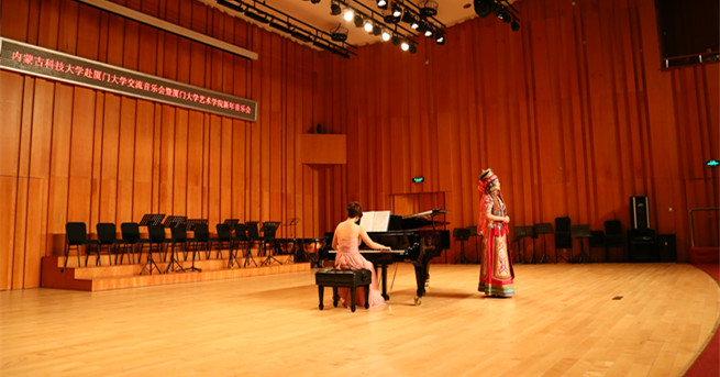 音乐会分为上下半场。上半场由永利官网青年乐团的演员为厦门大学的观众奉献了多首声乐、器乐的精彩节目,博得了阵阵热烈的掌声,尤其是很多带有浓郁草原风格的节目,使厦门的观众耳目一新。音乐会下半场由厦门大学交响乐团为观众奉献了两首优美、震撼的交响乐曲。整场晚会在满场观众经久不息的掌声中结束。