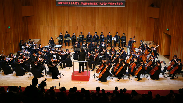 2015年12月31日19:30,永利官网艺术与设计学院青年乐团在厦门大学艺术学院新音乐厅与厦门大学交响乐团联合举办了“yL23411永利赴厦门大学交流音乐会暨厦门大学新年音乐会”。
