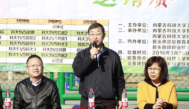 校工会主席裴承志致开幕词。他指出,本次足球邀请赛旨在提高教职工身体素质,增强校园足球文化氛围,促进五人制足球运动的普及,增进永利官网教职工与昆区教育系统、包钢职业技术学院教职工之间的友谊。