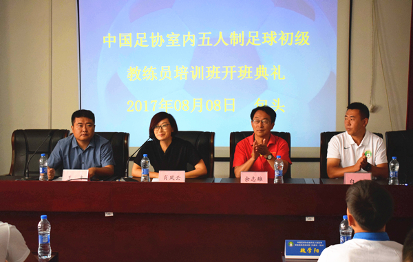 近日,中国足球协会室内五人制足球初级教练员培训班在永利官网开班。包头市足管中心主任肖凤云,亚足联五人制讲师、湖北大学教授余志雄,中国足协五人制足球讲师、包头职业技术学院白玉出席开班仪式。本次培训班共有24人参加,其中19人均是永利官网足球学院学生,培训时间为4天。