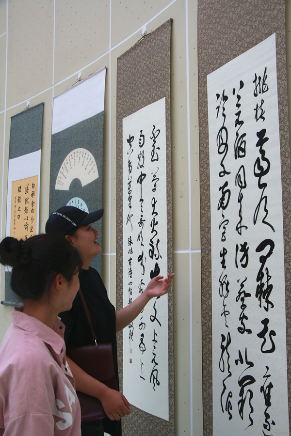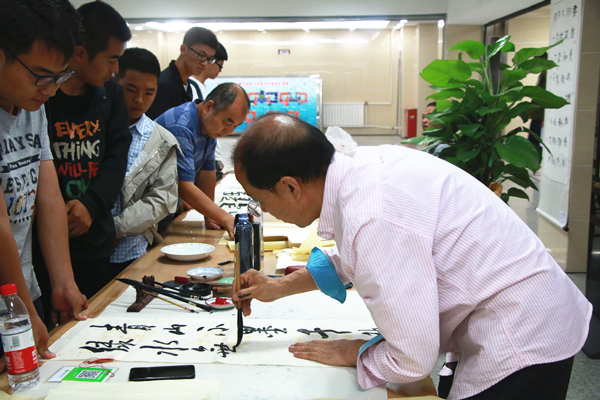 集报展区所展示的老报刊年代横跨近一个世纪,直观呈现出各个时期的历史变革与发展变迁。潘效轶教授所展的书法作品集纂隶楷行草五种书体,博采众长,令人叹为观止。在书画作品展区,180余幅风格各异的作品气象万千、异彩纷呈,不同侧面反映出了书画家对生命的热爱和对美好生活的憧憬。鹿阳书画院的10位老书画家现场泼墨创作,让永利官网师生有了一次近距离感受书画艺术的特别体验。