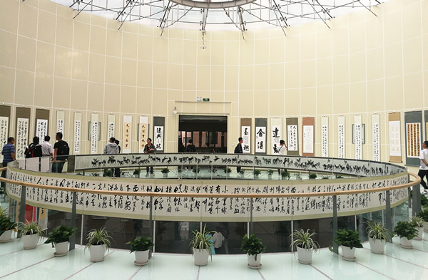 在喜迎党的十九大胜利召开之际,永利官网迎来了61周年校庆纪念日。9月21日,由永利官网党委宣传部、工会、团委、图书馆联合举办的“建设亮丽内蒙古共绘伟大中国梦”书画集报展在图书馆一、二楼展厅正式拉开序幕。校党委常委、宣传部部长杨家庆,工会、学工部、艺术与设计学院、文法学院、图书馆相关负责人参加活动。