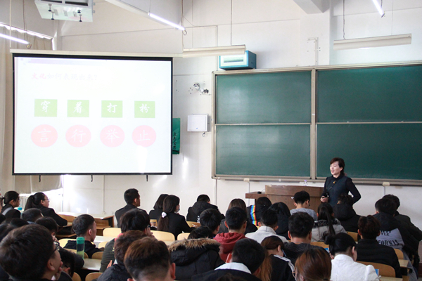 李瑞卿从“文化与礼仪”、“学习礼仪的意义”、“塑造良好的个人形象”、“日常交往礼仪”四个部分开展论述。通过对何为文化、文化如何表现出来、何为礼仪以及学习礼仪的作用的详细讲解,让广大学生对礼仪文化有了深入的了解,最后,李老师对在场的学生干部们提出了要求,要求他们起到组织领导、桥梁纽带、“四自一助”、榜样示范等作用。