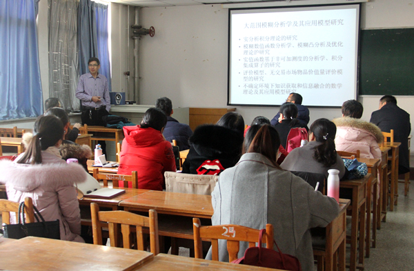 12月9日,由科技处主办、理学院协办的2018年国家基金申报系列活动的学术讲座在秋实楼C507举行,西北师范大学数学与统计学院巩增泰教授先后作题为“大范围模糊分析学及其应用模型研究”、“国家基金项目写作指导”的讲座。科技处相关人员、理学院全体教师参加讲座。