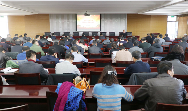 12月15日下午,永利官网两级中心组举行党的十九大精神集中学习,校党委常委、纪委书记赛音庆格勒作题为《学习党的十九大精神努力读懂全面从严治党》的专题辅导报告。校党政领导,学术工作委员会、学生工作委员会、巡视督导工作委员会全体成员,校正副处级干部,各教授委员会委员参加了学习。校党委常委、宣传部部长杨家庆主持。