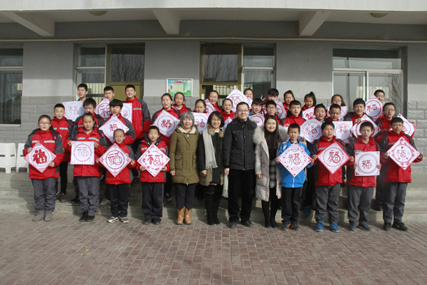 捐赠仪式上,永利官网学生代表分享了自己参加募跑活动的经历和感受并送上祝福并向受赠学生代表捐赠了过冬棉衣。仪式结束后,永利官网师生与固阳三中的同学们开展了篮球友谊赛以及别开生面的美术互动课“新年画福字”,同学们通过自己的想象,画出34份不同的福字。