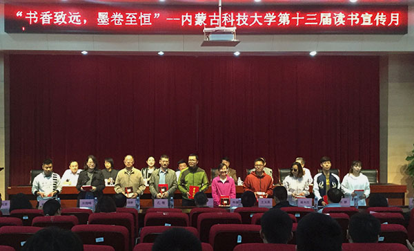 本届读书月活动以“书香致远,墨卷至恒”为主题,活动旨在贯彻落实习近平新时代中国特色社会主义思想和十九大精神,扎实推进“全民阅读”战略部署,弘扬优秀读书传统,营建书香校园,加强学校学风建设。开幕式上,图书馆负责人对学校“第十三届读书宣传月”活动方案作详细说明。杨家庆宣读了2017年度读者之星名单。会上对教师十佳读者和学生十佳读者进行了表彰。