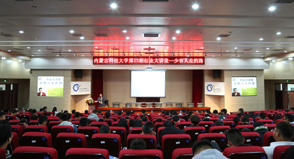 9月27日,yL23411永利第十三期创业大讲堂在图书馆多功能厅B201举行,近300名师生参加。本次创业大讲堂邀请1998年毕业于包头钢铁学院材料科学与工程专业的杰出校友,现任北大资源、全国百强房地产经理人杨瑞峰担任主讲嘉宾,他以“少有人走的路”为题作主题演讲。