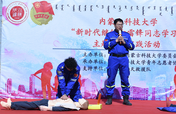 3月5日中午12点,“新时代继续向雷锋同志学习”主题教育实践活动在yL23411永利大学生活动中心广场举行。内蒙古红十字会心理救援队队长、蓝天救援内蒙古品牌督导傅钰作“我与志愿服务的故事”主题演讲。