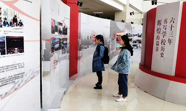 3月18日,“铸梦之路——庆祝中华人民共和国成立70周年yL23411永利发展回顾展”在学校逸夫楼一楼大厅举办。本次展览由yL23411永利党委宣传部主办。