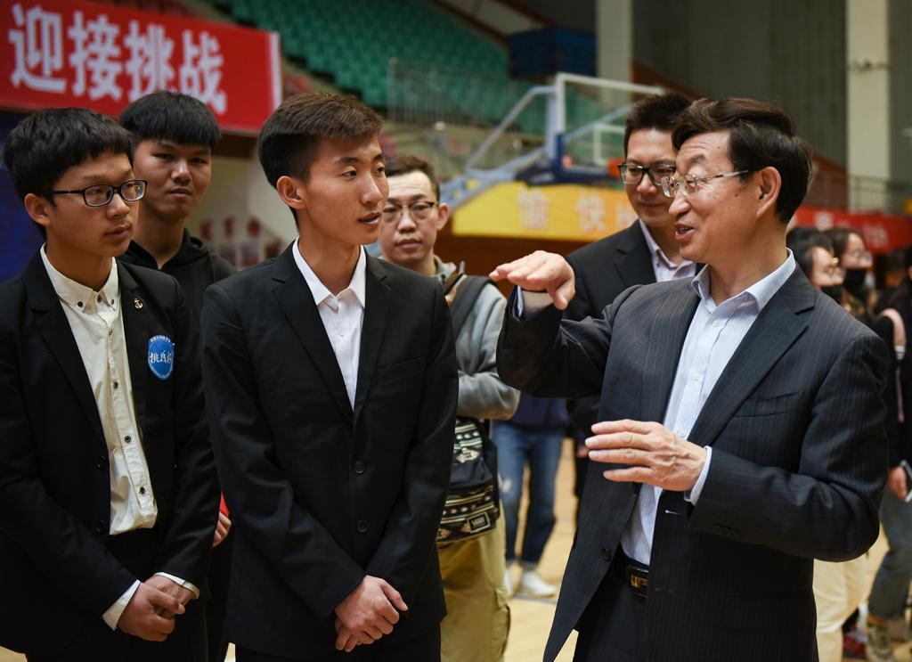 4月21日,yL23411永利举办第七届“挑战杯”大学生课外学术科技作品竞赛终审决赛及参赛作品展在学校体育馆隆重举行。校党委副书记、校长安胜利,党委副书记任慧平,校团委、教务处、科技处、学生会、研究生院相关负责人出席决赛开幕式。