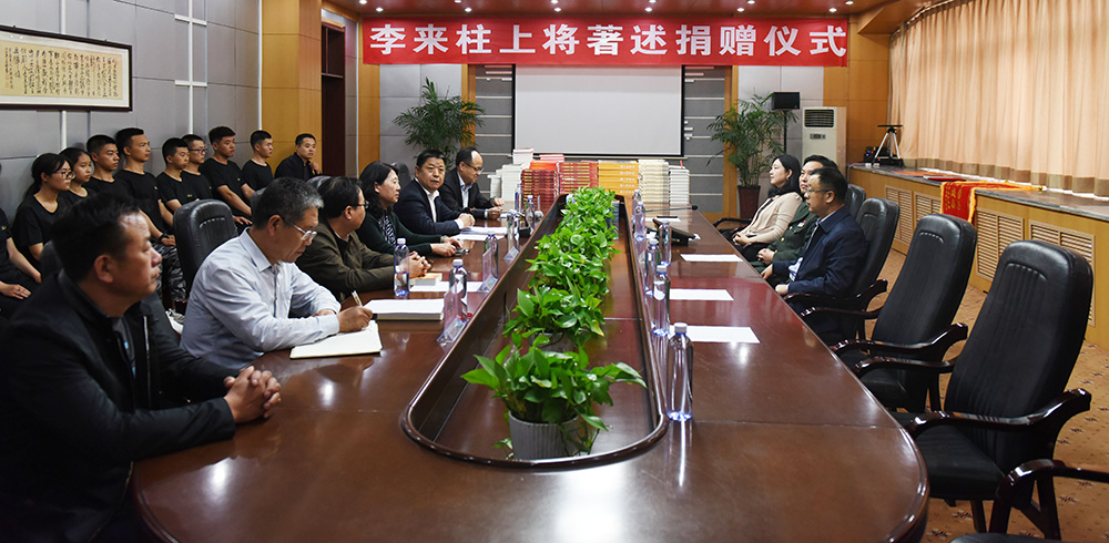 4月19日下午,李来柱上将著述捐赠仪式在校图书馆B308会议室举行。包头市昆区人民武装部政委段占峰、副校长冯志强,学生工作部、图书馆相关负责人及20余名学生代表参加本次捐赠仪式。