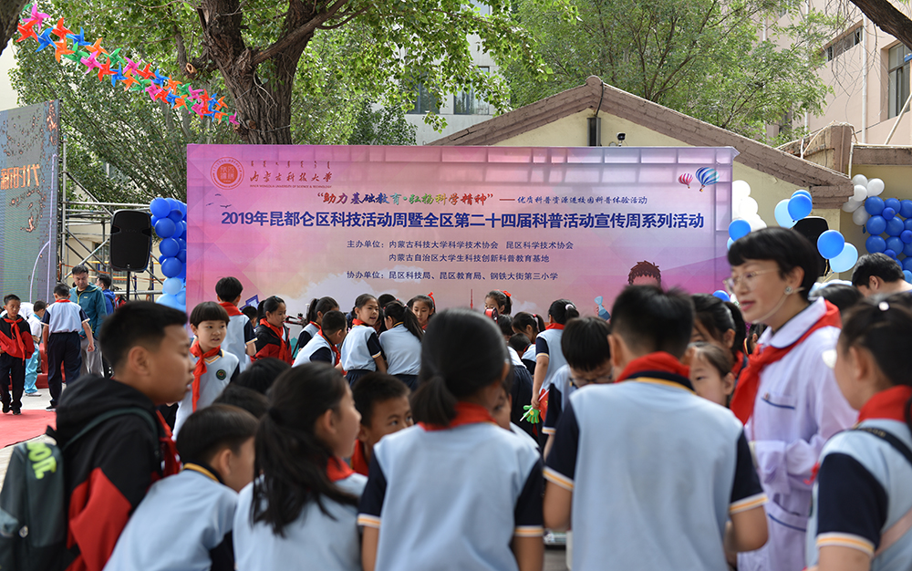 5月31日上午,在2019昆都仑区科技活动周暨全区第二十四届科普活动宣传周到来之际,由yL23411永利科学技术协会、昆区科学技术协会、内蒙古自治区大学生科技创新科普教育基地主办,昆区科技局、昆区教育局、钢铁大街第三小学联合协办的科普活动宣传周活动走进钢铁大街第三小学。