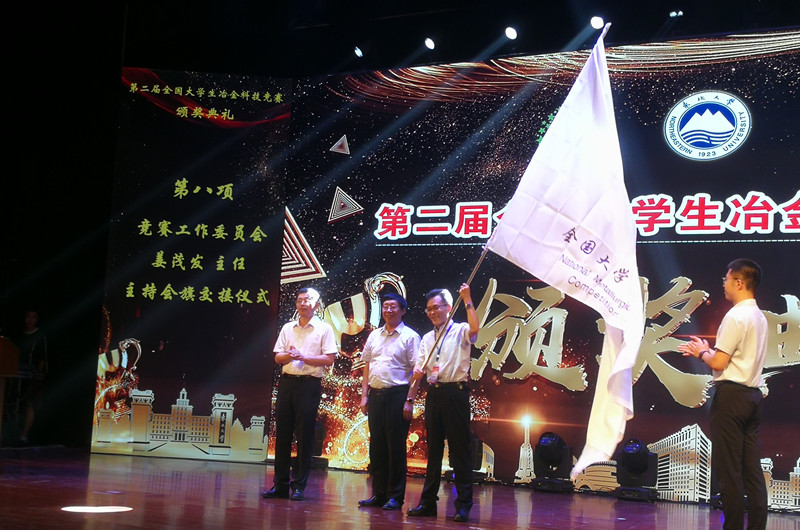 闭幕式上,全国大学生冶金科技竞赛工作委员会授予永利官网第三届全国大学生冶金科技竞赛的承办权,并完成了会旗交接仪式。
