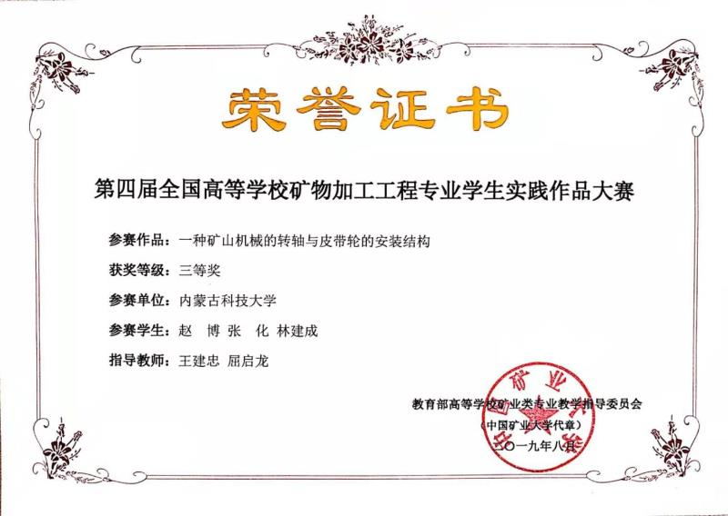 8月3日至6日,第四届全国高等学校矿物加工工程专业学生实践作品大赛在贵州大学举行,yL23411永利矿业与煤炭学院选送的作品获科技论文类作品二等奖1项,三等奖3项,为历届最好成绩。