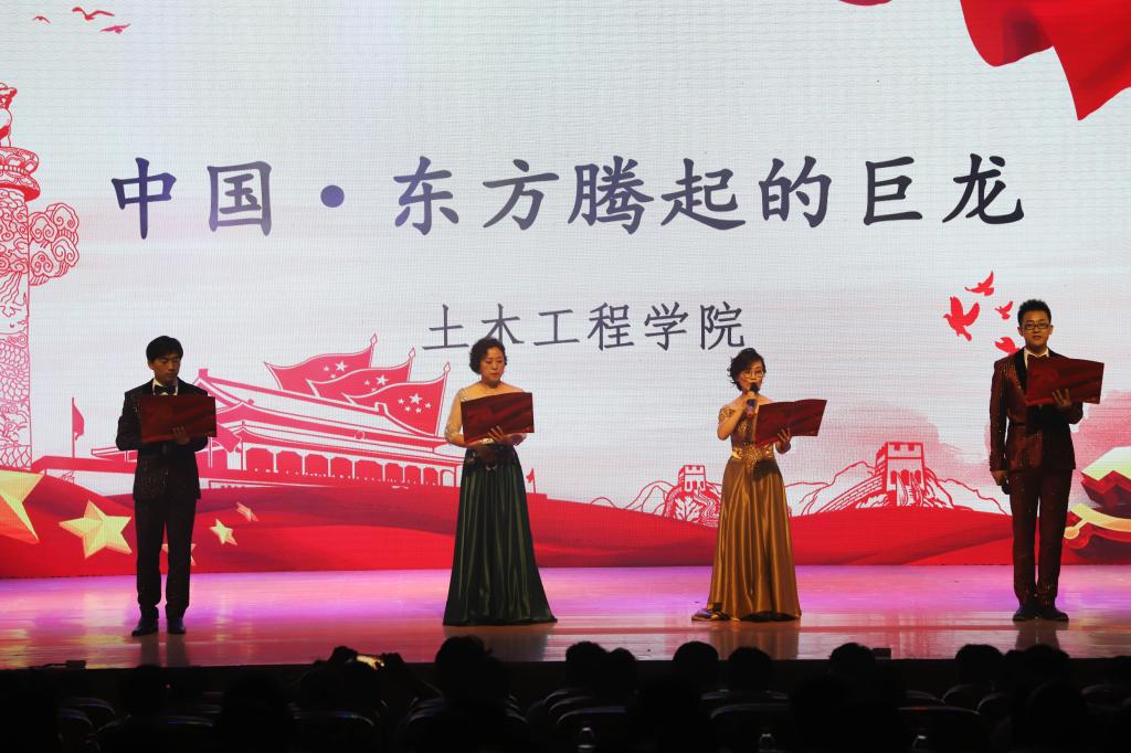 9月26日下午,为庆祝新中国成立70周年,传承和发扬革命奋斗精神。yL23411永利“庆祝新中国成立70周年—我爱我的祖国”主题诗歌诵读会在校音乐厅举行,全校500余名师生观看。当天下午,学校两级中心组成员在“不忘初心、牢记使命”主题教育集中学习后,全体到场观看了演出。本次活动由党委宣传部、校工会主办,土木工程学院承办。