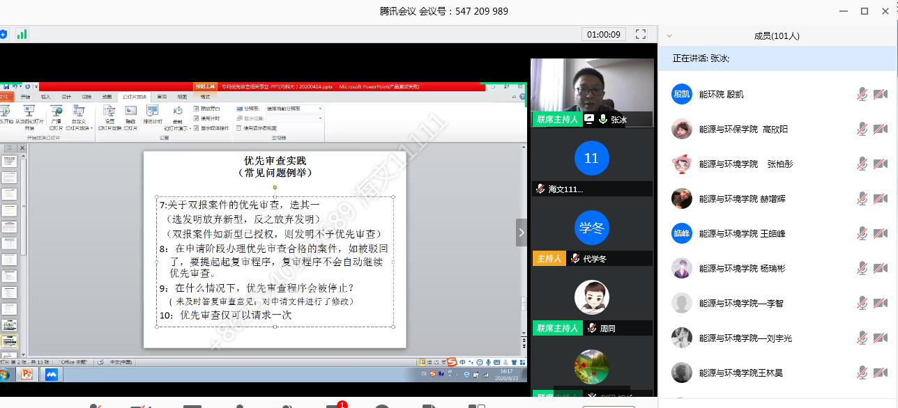 为庆祝第20个世界知识产权日,提升学校广大师生知识产权意识,4月23日下午,2020年yL23411永利知识产权活动周——知识产权线上讲座采用腾讯会议的方式举办,北京律远专利代理事务所、智慧芽信息科技(苏州)有限公司,校科技处、图书馆相关负责人及100余名师生代表参加本次讲座。