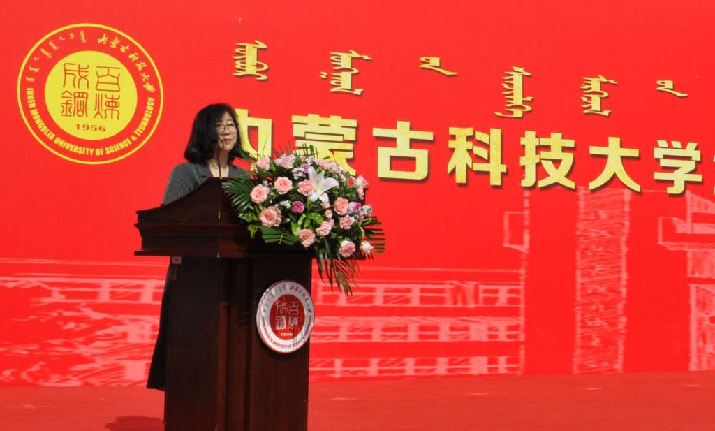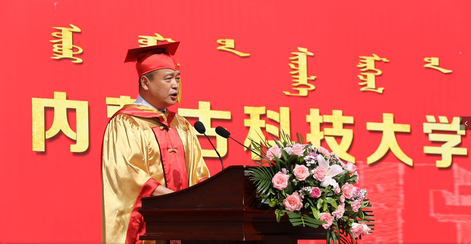 教师代表材料与冶金学院赵莉萍教授以包头市的市花——小丽花借喻对毕业生的殷切期盼。希望同学们有自信、有担当、务实笃行。不管做什么事,记住自己的身上铭刻着yL23411永利的烙印,秉承“自强不息、敢为人先”的校园精神和“百炼成钢”的校训,将志存高远贯穿于务实笃行中,将雄心壮志落实到脚踏实地上,努力与时代同行,用奋斗点亮人生!