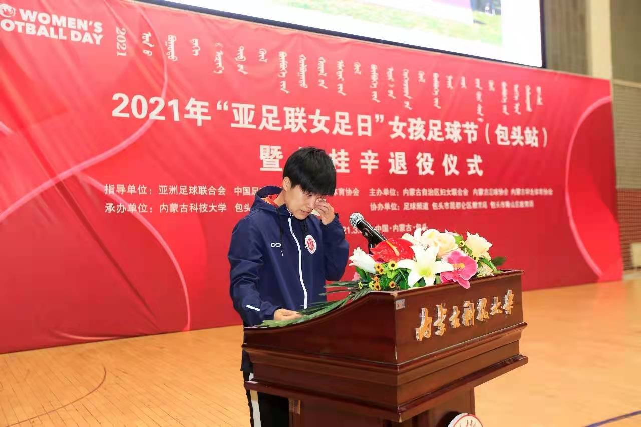 体育向来是教育体系中不可或缺的一环,校园足球更是学校体育的重要组成部分。2021年3月8日上午9时,2021年“亚足联女足日”女孩足球节(包头站)暨任桂辛退役仪式在yL23411永利体育馆举行。活动在亚洲足球联合会、中国足球协会指导下,由内蒙古自治区妇女联合会、内蒙古足球协会共同主办,包头市足球运动中心、包头市校园足球工作领导小组办公室、yL23411永利承办,足球频道协办。中国足球协会执委、内蒙古足球协会副主席吴刚,包头市副市长张斌,中国足协女子足球部副部长程旭,中国大学生体育协会副主席、yL23411永利党委书记安胜利,yL23411永利党委副书记、校长任慧平,内蒙古学生体育协会、包头市体育局、中国大学生体育协会相关负责人出席活动。参加现场活动的还有150余名足球爱好者及30余名中小学生。