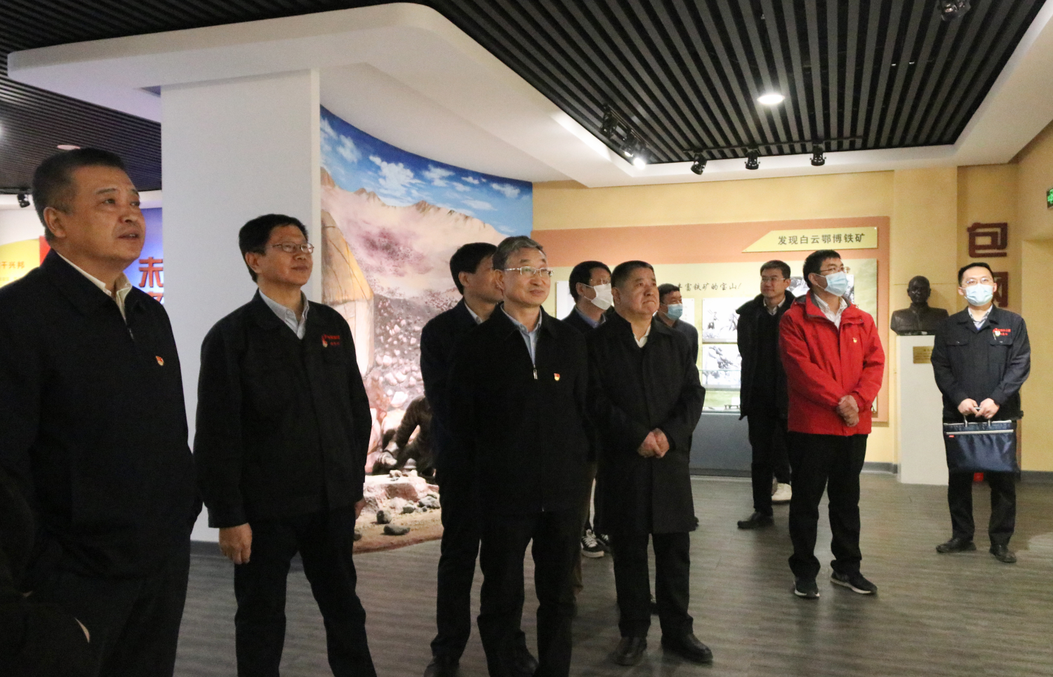 随后,校党委理论学习中心组成员参观了包钢会展中心和包钢精神主题展厅,了解包钢发展历程和企业精神。在包钢会展中心,展厅门口的双翼神马,展示着包钢两大支柱产业—钢铁与稀土,昭示着新一代包钢人“坚韧不拔、超越自我”的时代精神。中心组成员们详细了解了包钢作为“内蒙古工业长子”所经历的时代变迁,以及几代包钢人自力更生、自主创新的艰难历程。在包钢精神主题展厅,大家不时在一件件破损的工作服、一顶顶年久的安全帽前驻足,体味着艰苦年代一路走来的包钢人的勇气与魄力。