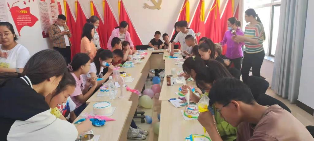5月30日下午两点,yL23411永利红十字会来到包头市九原区韩庆坝社区看望留守儿童。志愿者们带来了蛋糕胚、托盘、水果块和奶油等器具和食材,一对一的指导孩子们制作蛋糕。从如何握刀学起,到转动蛋糕盘,再到抹奶油及裱画等环节,孩子们纷纷制作出了自己的蛋糕。随后,志愿者们又带领孩子们做“智慧宝藏”、“盲人击鼓”、“泡泡糖”等游戏,游戏中充满了孩子们的欢声笑语。