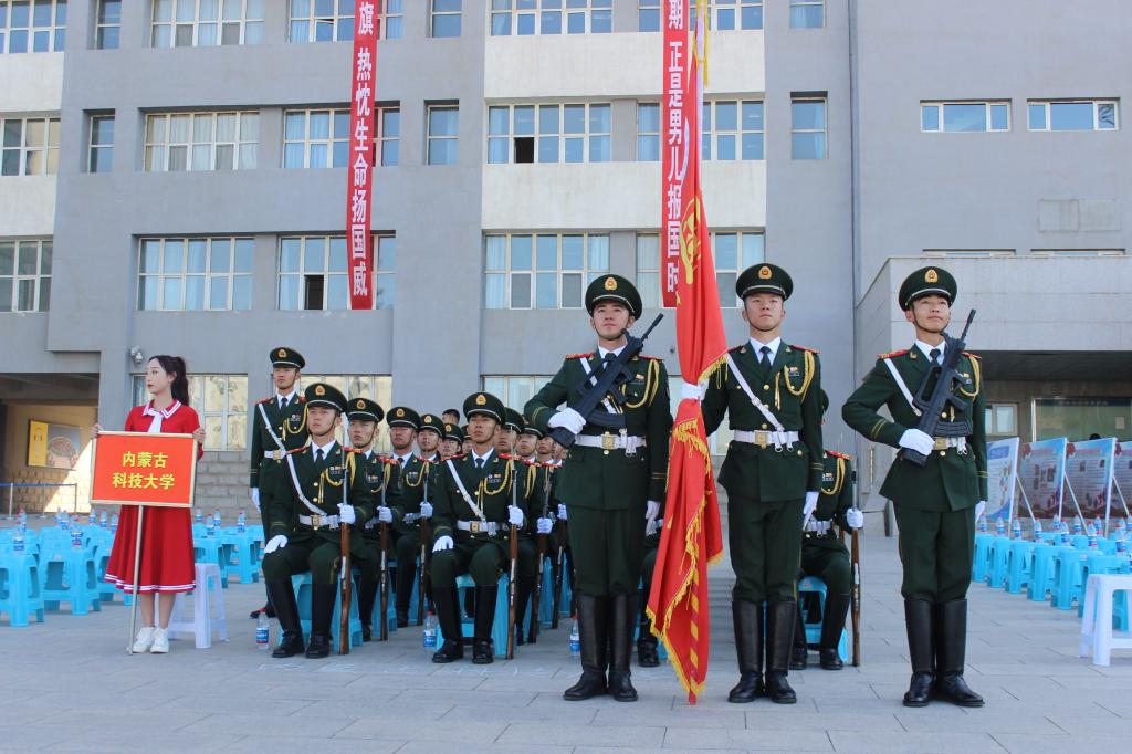 活动开始,由包头医学院国旗护卫队出旗并举行升国旗仪式。随后,yL23411永利、包头师范学院、包头医学院、包头职业技术学院、包头轻工职业技术学院、包头钢铁职业技术学院、包头铁道职业技术学院等七所高校国旗护卫队依次入场,各校队员以雄赳赳气昂昂的精神面貌通过主席台,接受了军地领导的检阅。