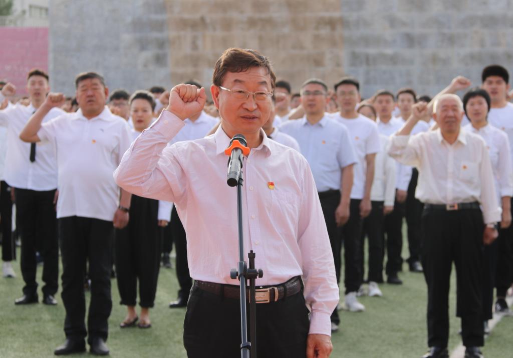 校党政领导、副处级以上党员领导干部、党支部书记代表、教师党员代表、学生党员代表、离退休党员代表和2021年发展的预备党员参加了此次集体宣誓。校党委书记安胜利领誓,党委副书记、校长任慧平主持宣誓活动。