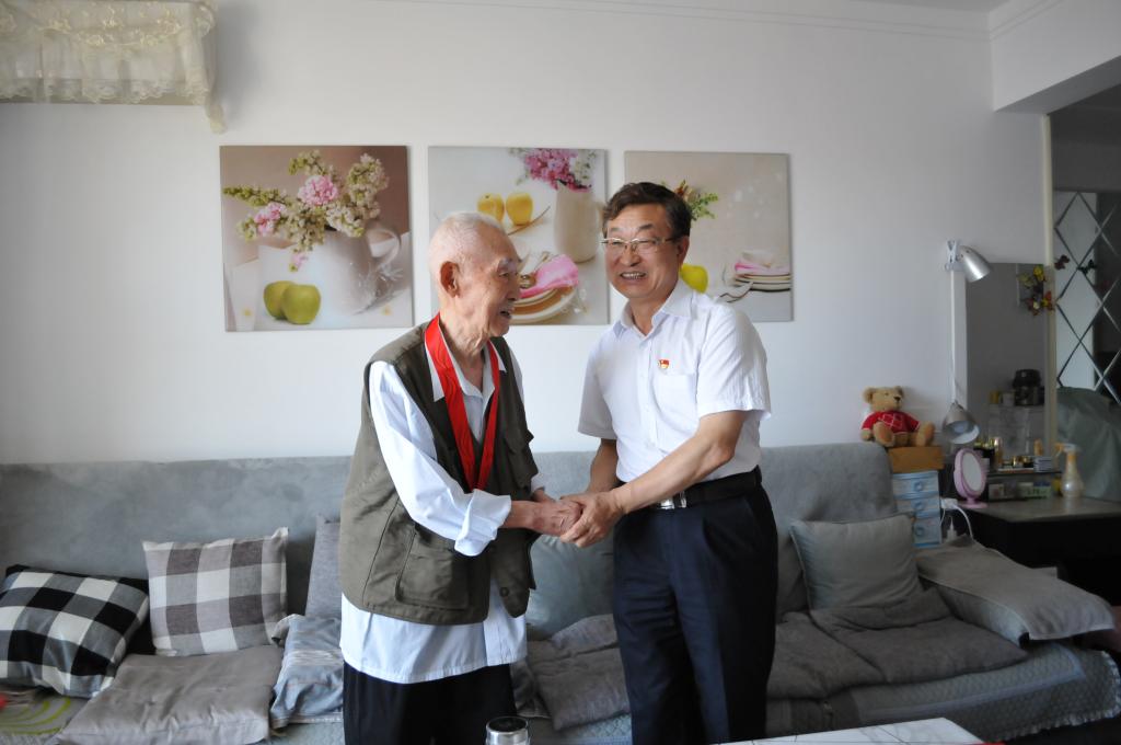6月29日,校党委书记安胜利、党委副书记冯志强前往老党员赵永科家中,看望慰问95岁高龄、80年党龄的赵永科同志,并为他颁发“光荣在党50年”纪念章,代表学校党委对老党员老干部为学校建设发展做出的贡献表示衷心感谢和崇高敬意。
