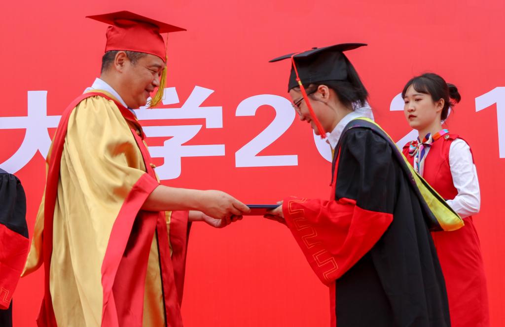 校领导、各学院院长为获得硕士学位和学士学位的毕业生代表颁发学位证书。