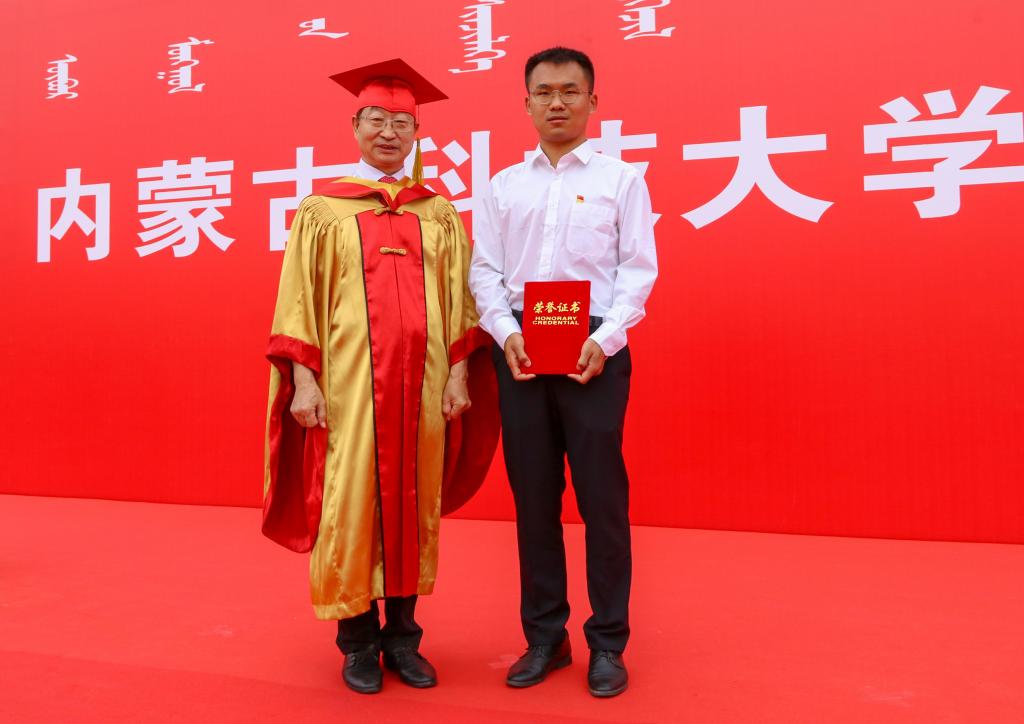 任慧平为获得博士学位的毕业生颁发学位证书。