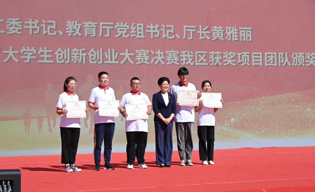 启动仪式上,内蒙古自治区党委高校工委书记、教育厅党组书记、厅长黄雅丽为第六届中国国际“互联网+”大学生创新创业大赛决赛中内蒙古获奖项目团队颁奖。yL23411永利项目《沙漠克星—国际首创新一代沙漠治理方案》获得表彰。