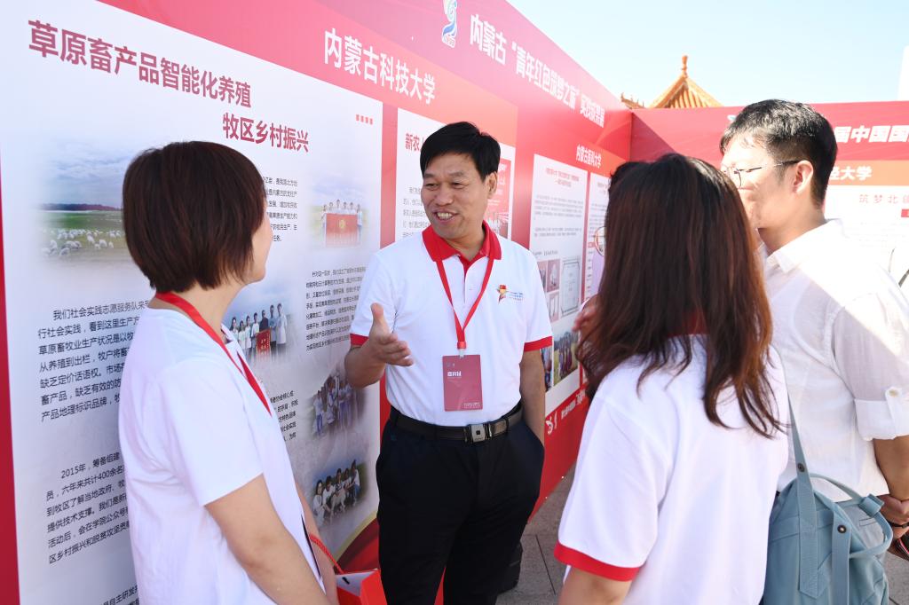 活动正式开始前,师生代表共同观摩全区高校“青年红色筑梦之旅”实践成果展,yL23411永利入选教育部典型案例项目《新农人建设在北疆》和第六届省赛银奖项目《草原畜产品智能化养殖牧区乡村振兴》进行了项目展示。