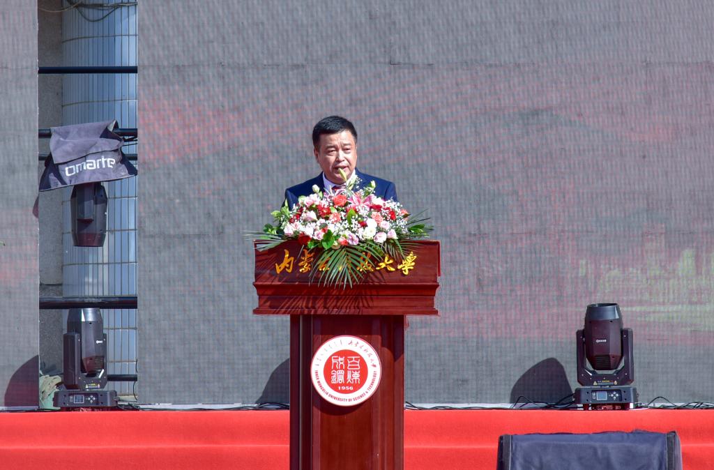 校党委书记安胜利主持大会并发表讲话。他深情回顾了yL23411永利65年来的发展历程。他说,一所大学的内涵发展和办学质量,必须通过服务国家战略和区域经济社会发展来检验,并在服务过程中得到验证。65年来,yL23411永利坚持扎根祖国北疆,不断积淀成长,在与国家发展和民族复兴同向同行、同频共振中践行初心使命,为国家、自治区经济社会发展作出重要贡献。
