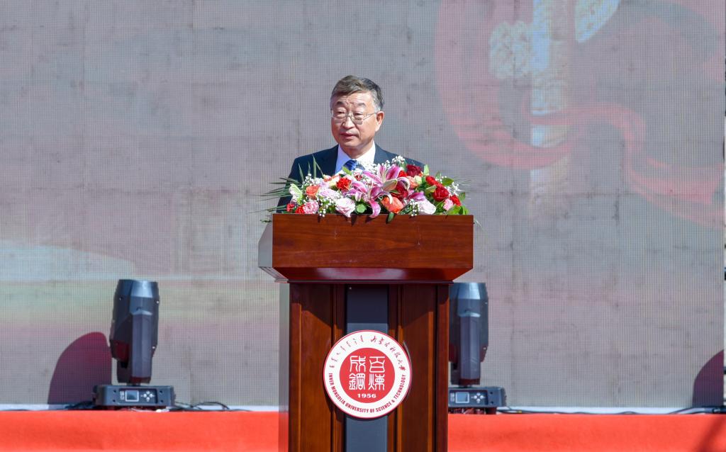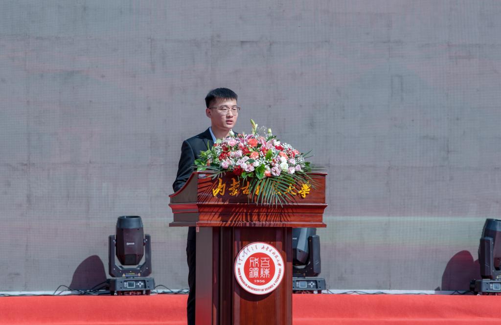 材料与冶金学院(稀土学院)院长宋希文作为教师代表,在发言中道出了内科大师生迈进新时代的使命与担当。他说,蓝图已经绘就,我们正向着早日建成人民满意的好大学进军,全校师生已经做好了充分准备,努力实现学校在立德树人、科学研究、服务社会、文化传承、对外合作与交流等方面的新突破。