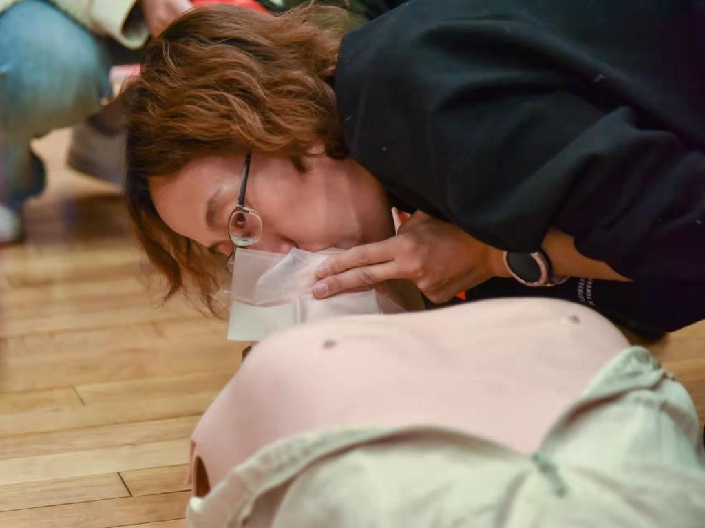 本次培训由内蒙古蓝天救援队红十字急救员师资团队主讲,培训采用理论讲授、现场演示、实践考核等方式重点讲授了心肺复苏的三个阶段和意义,强调预先识别和应急救护的重要性,并现场演示了胸外按压、人工呼吸和AED除颤监护仪的操作方法。