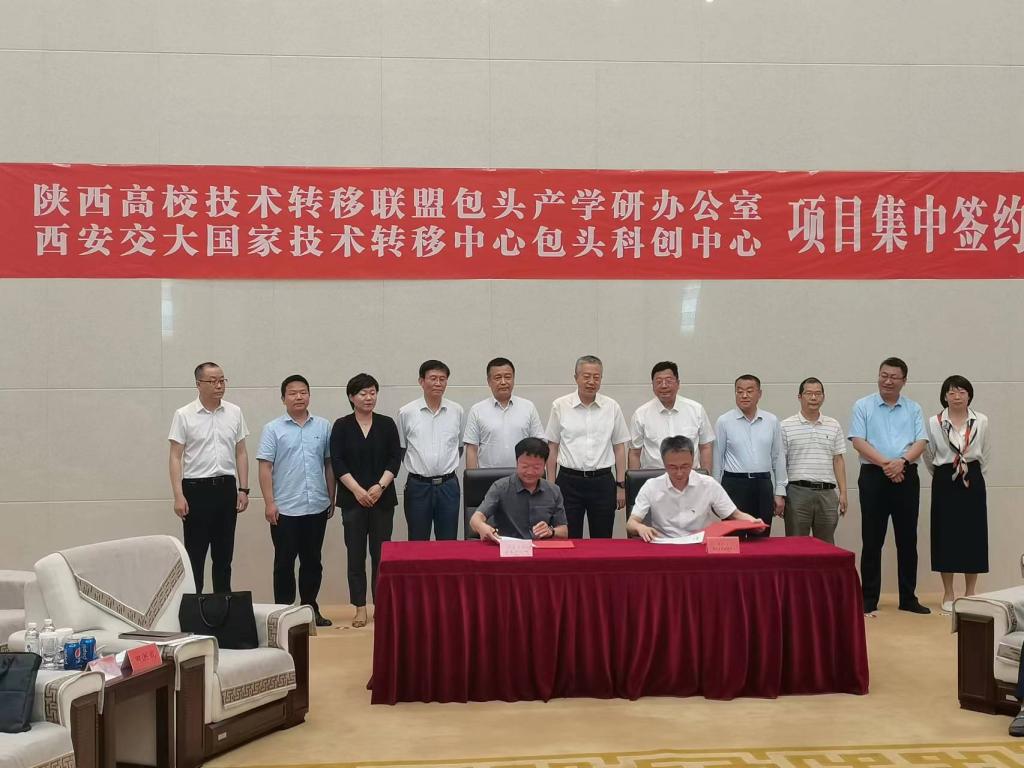 6月22日,“陕西高校技术转移联盟包头产学研办公室和西安交通大学国家技术转移中心包头科创中心”揭牌暨产学研项目集中签约会议在包头市政府举行。yL23411永利党委副书记、校长任慧平与陕西高校技术转移联盟秘书长安航签署了合作协议,共同为该中心揭牌。