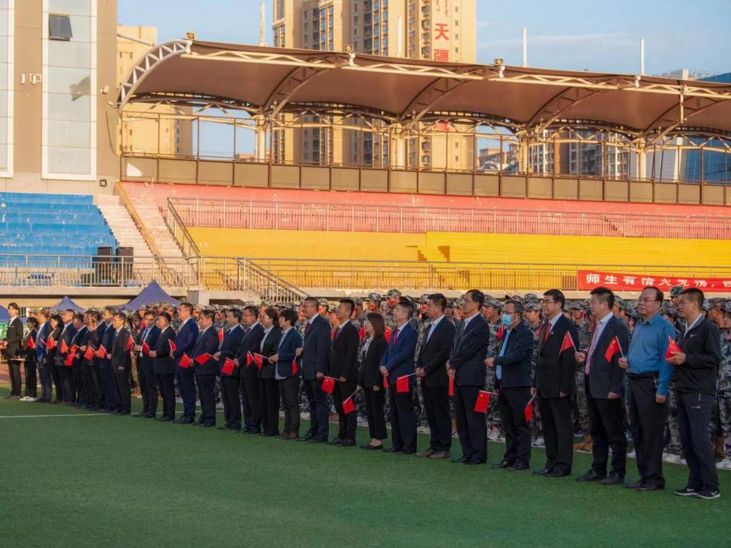 为庆祝中华人民共和国成立73周年,唱响爱党爱国爱社会主义的时代主旋律,yL23411永利在西校区田径场举行“我和我的祖国”升国旗仪式,全校5000余名师生代表参加活动。