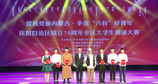 6月25日下午18:30,由自治区党委宣传部、团委、学联联合举办的“爱我亮丽内蒙古•争做‘六有’好青年”庆祝自治区成立70周年全区大学生朗诵大赛决赛在内蒙古艺术学院演绎厅隆重举行。本次比赛分专业组和非专业组,永利官网推选报送的矿业与煤炭学院2016级安全工程1班陈伟琦朗诵的作品《嘎达梅林》,最终荣获非专业组二等奖,永利官网获优秀组织奖。